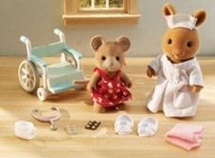 While Mother Mason is running errands, Laurel is looking after her little sister Melanie and her friend Sparky. The task will prove more difficult than she expected, but everything will work out in the end. The kids will learn that sharing toys is twice the fun! Calico Critters Melanie and Sparky Have a Play Date includes white mouse sisters Laurel and Melanie Mason, hound dog boy Sparky, horse rocker, red toy car, and 2 additional baby outfits on hangers.