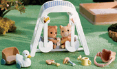 Peaches Hawthorne is heading for a day of fun at the playground. At first she likes having the swing all to herself, but soon she gets bored playing all alone. Luckily, Freddy Petite is there to keep her company! Calico Critters Peaches Makes a New Friend includes hamster baby Peaches Hawthorne, bear baby Freddy Petite, baby swing, duck car, sand bucket, watering can, scoop, and rake.